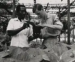 Under British colonial rule, Ghanaian farmers seized the opportunity to efficiently grow and export cocoa for the large British market, given that they had a safe food supply.[11] The labor force needed for the labor-intensive production of cocoa in Ghana's fertile south was mainly constituted of migrant workers from the savannah of northern Ghana.[12] This development was facilitated by the traditional Ghanaian system of communal purchase of land, which gave individual farmers the security of planting a cocoa tree that would take several years until being ready to harvest. Among other factors, this enabled Ghana to grow from zero in 1891 to the world's largest cocoa exporter in the world by 1911.[13]