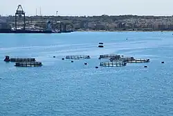 A fishing zone of 25 nautical miles surrounding the Maltese archipelago was established in the 1970s, with the first 12 miles exclusively reserved for Maltese fishermen. The zone is also used by aquaculture operators for controlled cultivation.[20] Marsaxlokk Harbour, located in southeastern Malta, is the island's primary fishing port. Approximately 40% of Malta's registered fishing vessels operate from the nearby villages of Marsaxlokk and Birżebbuġa, which are separated by a promontory featuring Fort San Lucian, now home to the Malta Centre for Fisheries Sciences.[18]