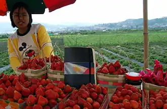 Agriculture in the Philippines is a major sector of the economy, ranking third among the sectors in 2022 behind only Services and Industry. Its outputs include staples like rice and corn, but also export crops such as coffee, cavendish banana, pineapple and pineapple products, coconut, sugar, and mango.[1] The sector continues to face challenges, however, due to the pressures of a growing population. As of 2022, the sector employs 24% of the Filipino workforce[2] and it accounts for 8.9% of the total GDP.[3]