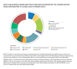 Following up on the 2023 edition of the FAO report – The State of Food and Agriculture[25] – the subsequent edition provides a detailed breakdown of the hidden costs associated with unhealthy dietary patterns that lead to non-communicable diseases[26] for 156 countries.[9] The report finds that in 2020, global health hidden costs amounted 8.1 trillion 2020 PPP dollars, 70 percent of all of the hidden costs of agrifood systems.[9] Diets low in whole grains are the leading concern (18 percent of global quantified health hidden costs), alongside diets high in sodium and low in fruits (16 percent each), although there is significant variation across countries.[9]