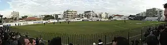 Built and opened in 1950, it can hold up to 2267 spectators. On one occasion, a record 4067 fans were seated within the precinct in 1979.[1] Two new platforms were constructed in 1994.[1] To honor former chairman Dimitris Kontikakis, the club board decided to change the stadium's name to Dimitris Kontikakis Stadium.[3]
