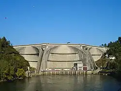 Aguieira Dam (Portuguese: Barragem da Aguieira) is a multiple-arch dam on the Mondego River, located on border line between the municipalities of Mortágua and Penacova, in Central Portugal.