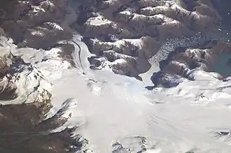 Aguilera (2,546 metres (8,353 ft)) is a stratovolcano in southern Chile. The volcano rises above the edge of the Southern Patagonian Ice Field. It is a remote volcano that was identified as such in 1985. The first ascent only occurred in 2014, making it the last unclimbed major Andean volcano.