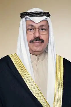 Ahmad Nawaf Al-Ahmad Al-Sabah (Arabic: الشيخ أحمد النواف الأحمد الصباح, romanized: ash-Shaykh ʾAḥmad al Nawwāf al-ʾAḥmad aṣ-Ṣabāḥ, born 1956) is a Kuwaiti politician and military officer who served as the Prime Minister of Kuwait from 24 July 2022 until his resignation on 20 December 2023.[1][2] He is the eldest son of the late Nawaf Al-Ahmad Al-Jaber Al-Sabah, the former Emir of Kuwait.[3]