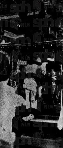 The casket was opened upon arrival to let the Sultan's body touch the ground, despite the fact that it had been embalmed in Singapore. The procedure continued, and ultimately the coffin was lowered and the grave was filled even though the grave proved to be too tiny for it. Then the mourners filed back to the launchers in a haphazard fashion, like spectators fighting for position during a football game. By 9:30 p.m., the observer had returned to Labuan and was expressing gratitude for Resident Pretty and his wife's handling of the issue and their great esteem for them. She was also commenting on the unusual combination of traditional ceremony and noisy crowd.[68]