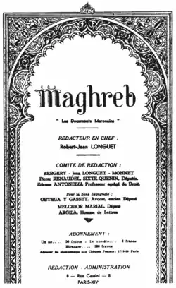 The protest against the Dahir was only one of Balafrej and his companions' commitments. At the beginning of 1932, Balafrej, Ouazzani, and Ben Abdeljalil approached Robert-Jean Longuet—Parisian lawyer, anti-colonialist, and socialist—to secure the defence of the Moroccan nationalists harassed by the authorities. Balafraj and Ouazzani established the journal Maghreb in 1932.[4]