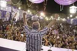 Shafik's presidential campaign was characterized by an emphasis on public order and security, and although the ruling Supreme Council of the Armed Forces did not endorse a candidate, American news outlet McClatchy Newspapers pointed to the "conspicuous presence of sympathetic security forces at his campaign stops" as evidence of his close relationship with the military.[25] Shafik used his campaign events to court Egyptian elites and voters wary of an Islamist-led government. He reportedly suggested that he would employ executions and "brutal force" to restore order in the country within a month of taking office.[26]