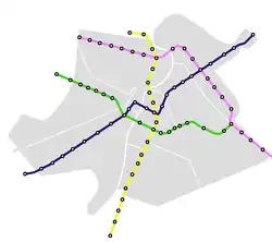 Ahvaz Metro is a metro system serving the city of Ahvaz, Iran. The first line with a length of 23 km is currently under construction with 24 stations. There are three other lines also planned for the city.