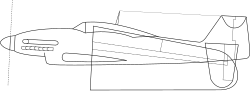 Aichi's final design, designated AM-24 by Aichi and given the military designation M6A1, was a two-seat, low-winged monoplane powered by a 1,050 kW (1,410 hp) Aichi AE1P Atsuta 30 engine (a licence-built copy of the Daimler-Benz DB 601 liquid-cooled V12 engine). The original specification dispensed with a traditional undercarriage but it was later decided to fit the aircraft with detachable twin floats to increase its versatility. If conditions permitted, these would allow the aircraft to land next to the submarine, be recovered by crane and then re-used. The floats could be jettisoned in flight to increase performance or left off altogether for one-way missions.[6] The Seiran's wings rotated 90 degrees and folded hydraulically against the aircraft's fuselage (with the tail also folding down) to allow for storage within the submarine's 3.5 m (11 ft) diameter cylindrical hangar. Armament was a single 850 kg (1,870 lb) torpedo or an equivalent weight in bombs. One 13 mm (0.51 in) Type 2 machine gun was mounted on a flexible mounting for use by the observer.[7][8][9]