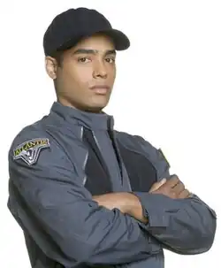 Lieutenant Aiden Ford is introduced in the series premiere, "Rising", where he is stationed at the Antarctica outpost. Ford served in the Stargate Command (SGC) before and is twenty-five years old at the beginning of the first season.[1] Ford served as John Sheppard's second-in-command after the events of "Rising"[2] until a Wraith feeds upon Ford during a Wraith attack on Atlantis in season 2's "The Siege, Part 3". An exploding grenade blows them off a building into the ocean, and Ford's unconscious body and the still attached Wraith are recovered over an hour later. Ford survives after having an overdose of Wraith enzyme and later undergoes mental and physical changes. Ford develops a solid black left eye and becomes more aggressive and paranoid, fleeing Atlantis with a stolen Puddle Jumper.[3]