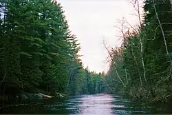• 4.2 km (or 2.7 km direct line) north to the Owl River (elevation: 186 m). This last river obtains from a set of water bodies, in particular the lakes: David, Pythonga, Moore, Mooney, Carr, Brock and Owl.