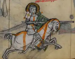 The ailette (French language for little wing) was a component of late thirteenth and early to mid fourteenth century knightly armour. Usually made of cuir bouilli (sometimes of plate or parchment), ailettes were thick, quadrangular pieces of leather or wood that attached to the shoulders by means of silk or leather cord. Ailettes were usually flat and nearly rectangular in shape, and usually decorated with heraldic designs.