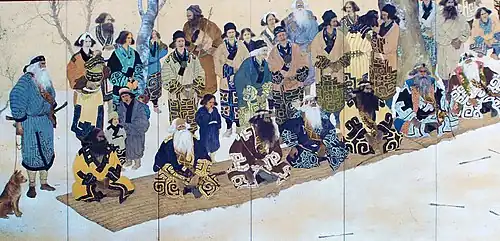 Active contact between the Wajin (ethnonym for Japanese, also known as Yamato people) and the Ainu of Ezogashima (now known as Hokkaido) began in this period.[22] The Ainu formed a society of hunter-gatherers, surviving mainly by hunting and fishing. They followed a religion that was based on natural phenomena.[23]