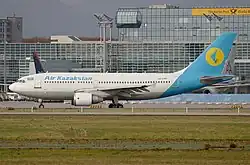 Air Kazakhstan,[1] stylised as Air Kazakstan (Kazakh: Эйр Қазақстан / Eir Qazaqstan), was a Kazakh airline and its national carrier. After its bankruptcy, the airline was shut down. It was headquartered in Almaty.[2]