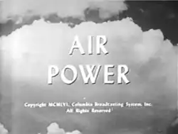 Air Power is a historical educational television series broadcast on CBS from November 11, 1956, until May 5, 1957. In 1958 it was repeated, replacing The Twentieth Century during the summer.[1] It dealt with the rise of aviation as a military weapon. It was produced in cooperation with the United States Air Force.[2] The series also featured a musical score composed by Norman Dello Joio and conducted by Alfredo Antonini.