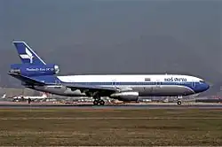 In April 1974, the carrier placed an order for two Airbus A300s,[5] one A300B2 and one A300B4, taking an option for one more of the longer-range variant.[6] After taking delivery of the first of these aircraft on a lease basis from Airbus in October 1974, Air Siam became the second operator worldwide in deploying the type on scheduled services, after Air France.[7]: 590 Also in 1974, the company placed an order for a McDonnell Douglas DC-10-30, to be used on the Bangkok–Los Angeles route.[8] Rights for the routes the airline intended to deploy the A300s on were never granted, and the A300B2 was returned to the lessor just a year after it was incorporated into the fleet.[9]