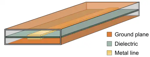 Air stripline is a form of stripline using air as the dielectric material between the central conductor and the ground planes. Using air as the dielectric has the advantage that it avoids the transmission losses usually associated with dielectric materials.[1]