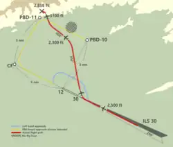 - ^ A right-hand downwind approach would have required flying south of the airport; this request was denied by ATC, twice. The captain then attempted a left-hand downwind approach (flying north of the airport) that significantly deviated from established procedures.