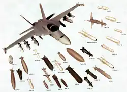 Aircraft ordnance or ordnance (in the context of military aviation) is any expendable weaponry (e.g. bombs, missiles, rockets and gun ammunition) used by military aircraft. The term is often used when describing the payload of air-to-ground weaponry that can be carried by the aircraft or the weight that has been dropped in combat. Aircraft ordnance also includes air-to-air, anti-ship and anti-submarine weapons.
