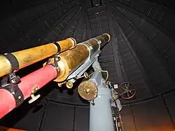 The observatory moved along with the library, a purpose-built observatory being built on the library roof and a brass 6-inch (150 mm) refracting telescope was obtained by the observatory curator Ex-Baillie James Lewis for the sum of £500. The original Dr Reid telescope was also brought from the old observatory.