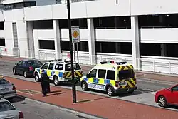 The Airport Police Service currently use the standard yellow and blue retro-reflective Battenberg markings, together with the force crest, on all marked, operational vehicles.[26] the force also utilize