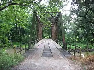 The Airtight Bridge is a steel bridge spanning the Embarras River in Coles County, Illinois, in the United States 8 miles (13 km) north of Charleston, Illinois. The bridge is a Pratt through truss bridge with a steel structure, a wooden deck, and concrete piers. The bridge was built in 1914 by the Decatur Bridge Company and designed by engineer Claude L. James.[2] It was added to the National Register of Historic Places in 1981.[1] It reportedly got its name from the unnatural stillness encountered when crossing it.