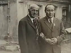 In 1938, a 20-year memorial service for Idel Ural State was held in Warsaw, organized by Tatar activist Ayaz Ishaki. Hakimcan was one of the seven Finnish Tatars who took part in the celebration. Led by the Polish Tatar imam Ali Woronovicz, they visited the tomb of the unknown soldier to honor the deceased fellow Muslims.[12] In June 1970, Hakimcan was invited to Kazan, Tatarstan (TASSR), by Finnish Tatar cultural worker Ymär Daher, as part of the conference on the 50th anniversary of Tatarstan. There they went to the "G. Ibragimov Institute of Language, Literature and Art of the Tatarstan Academy of Sciences", where they were greeted officially. Folklorist Ilbaris Nadirov, who had lectured previously at Tampere, was also present. During the trip, Hakimcan paid a visit to poet Tuqay's grave to show his respects.[13][1][14] Magazine "Sotsialistik Tatarstan" (Социалистик Татарстан) published a poem by Hakimcan and briefly interviewed him.[15]