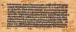 ![]() The Aitareya Upanishad, is found embedded inside the Rigveda. Above: a manuscript page (Sanskrit, Devanagari script) | |