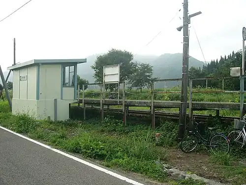Due to damage caused by torrential rainfall on July 30, 2011, services on the section of line between Aizu-Kawaguchi and Tadami, which includes this station were replaced by a provisional bus service. The closed section resumed operations on 1 October 2022.[2]