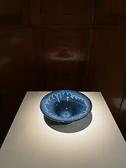 Aizuhongō ware (会津本郷焼, Aizuhongō-yaki) is a type of Japanese pottery traditionally from Fukushima Prefecture. The Aizu-Hongo ware consists of a wide range of decorative styles with the use of asbolite, Japanese traditional paints, as well as other paints originating from the West.[2] Hence, the diversity entailed within Aizu-Hongo ware originates from the progression of independent pottery production due to the termination of the magistrate's office. This led to the independent pottery operations to produce different unique styles of the Aizu-Hongo ware. In modern times, Aizu-Hongo wares have been recognized for its practicalities to create various different products ranging from tea cups to sake bottles.[3]