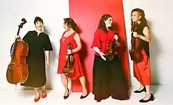 The quartet was founded by Ayane Kozasa, viola, Karen Ouzounian, cello, and Miho Saegusa and Zoe Martin-Doike, violins.[1] Martin-Doike departed in 2015, and was replaced by Arianna Kim.[6] With Kim's departure late in 2019, violinist Emma Frucht joined the ensemble.[7]