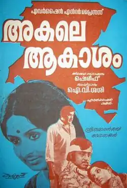 Akale Aakaasham (മലയാളം:അകലെ ആകാശം) is a 1977 Indian Malayalam film, directed by I. V. Sasi and produced by Thiruppathi Chettiyar. The film stars Madhu, Vidhubala, M. G. Soman, Adoor Bhasi, Sridevi and Sreelatha Namboothiri in the lead roles. The film has musical score by G. Devarajan.[1][2][3]