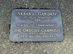 Lee Kelly's Akbar's Garden (1984) is a 17-foot (5.2 m) tooled aluminum sculpture installed in Straub Quadrangle,[1] across from the Student Recreation Center, on the University of Oregon campus.[2][3] The work was donated by art collector and philanthropist Jordan D. Schnitzer and his parents Harold and Arlene Schnitzer in 2002.[3] Before then, it was installed at the Claremont Hotel in Berkeley California.[4] According to the Jordan Schnitzer Family Foundation, Akbar's Garden commemorates the "Oregon Campaign" that raised more than $225 million for the University between 1992 and 1998.[3]