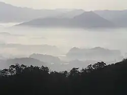 In 1575, He participated in the Siege of Takaya Castle (高屋城の戦い) against Miyoshi Yasunaga-Ikko Ikki coalition, and then in the Battle of Nagashino against the Takeda clan.[25] After that, Nobunaga sent Akechi Mitsuhide to take control of Tanba Province. Mitsuhide attempted diplomacy and won over a number of the smaller local lords to his side. However, the Akai clan were adamant in their opposition, and Mitsuhide was forced to lay siege to Kuroi Castle for two months in the winter of 1575. According to the "Yoshikawa clan's record", even though many of local lords in Tanba has joined the anti-Nobunaga force, the majority of them keep their loyalty to Nobunaga and supporting Mitsuhide. in this campaign.[26] Later, he was awarded the Court titles of "Junior Fifth Rank (Lower)" and "Governor of Hyūga", and the honorary title of "Koretō Hyūga-no-kami".[27] In June, Nobunaga ordered him to pacify Tanba Province and Tango Province.[28][27] During this campaign in Tanba Province, Mitsuhide cooperated with local lords such as Obata Nagaaki from Funai County. In addition, Kawakatsu Tsuguhisa from Imamiya, Kuwata County, had also switched sides to the Oda side after being persuaded by Obata.[29][30][31] On July, Mitsuhide began attacking pro-Yoshiaki local lords of Tanba such as Utsuno Yorishige with the help of Obata and Kawakatsu. However, at the same time he was also ordered by Nobunaga to send reinforcements to Echizen and Tango, and left the area. On August, Utsuno Yorishige attacked the Oda clan's Umaji Castle and Amarube Castle. The reason behind this order was said to be a checkmate against Akai Naomasa of Hikami County, who was pursuing attacks on Izushi Castle and Takeda Castle in Tajima, which were the territory of the Yamana clan, while showing an ambiguous attitude toward Nobunaga's attack on Tanba.[32] Later, Mitsuhide returned to Sakamoto Castle, and on October began a new attack on Tanba. Utsu Yorishige fled without fighting, and Mitsuhide then besieged Kuroi Castle, where Akai Naomasa had returned after giving up on the attack on Takeda Castle.[33] Later, Mitsuhide built fortifications on at least three separate places in his effort to besiege and capture Kuroi Castle.[34]
