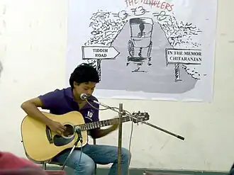 Akhu also appeared on the second season of The Dewarists.[15][16] He has also initiated a project for the musicians of the world to meet at one platform by the name, "Imphal Music Project".[17] In May 2015, he started a music project with the help of Foundation for Social Transformation (FST) for children of Manipur by the name "A Native Tongue Called Peace".[18] His band, Imphal Talkies, was one of the 32 bands chosen from 32 countries by in Place of War and Unconvention (United Kingdom) for the Album of the Revolution in 2013.[19]