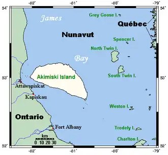 - ^ a b c "Akimiski Island". Geographical Names Data Base. Natural Resources Canada. Retrieved 2020-06-15.