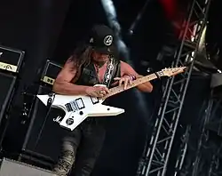 ![]() Takasaki performing with Loudness at Wacken Open Air in 2016 | |