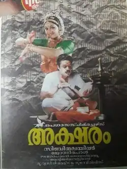 Aksharam (അക്ഷരം, English: Alphabet) is a 1995 Indian Malayalam film, directed by Sibi Malayil. The film stars Suresh Gopi, Annie, and Jagathy Sreekumar in lead roles. This film is noted for the first screen appearance of famous south Indian actor Kalabhavan Mani, who did a cameo role of an auto rickshaw driver. The film has a musical score by Perumbavoor G Ravindranath.[1][2][3] In this movie, Gopi portrays a journalist, who loses everything for his job to find truth.