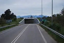 The Aktio–Preveza Undersea Tunnel is an undersea road tunnel across the mouth of the Ambracian Gulf in western Greece. It links Epirus and the city of Preveza on the north shore of the gulf with the cape of Aktio (Actium) in Aetolia-Acarnania, in Central Greece. Completed in 2002, the tunnel is an important piece of infrastructure in an underdeveloped region, and greatly shortens the travel distance between the two sides of the gulf, which had been only possible by ferry. It is the only undersea tunnel in Greece.[1][2][3]
