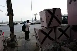 The camp covers a total area of approximately 1 square kilometer.[3] At its northern side the camp borders the main roads at the entry to the Tyre peninsula and to its eastern side the north-south Beirut-Naqoura Sea Road. Hence, it is severely affected by heavy traffic jams at the crossroads, especially during peak hours at the Al-Buss roundabout.[2] The camp has a number of entrances for pedestrians, but only one – on the south-eastern side – for vehicles. Entry and exit there is controlled at a checkpoint by the Lebanese Armed Forces.[1] Foreign visitors have to present permits from Military Intelligence.[4]
