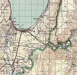 Al-Hamma (Arabic: الحمّة) was a Palestinian Arab village in the Tiberias Subdistrict, 12 kilometres (7.5 mi) southeast of Tiberias. It was situated on a narrow salient in the Yarmouk Valley bounded by Syria to the north and Transjordan to the south and east. Al-Hamma was one of the stations on the Jezreel Valley railway, linking the Hejaz Railway to Haifa.[4] It was depopulated twice, once in July 1949, and again between 1949 and 1956.
