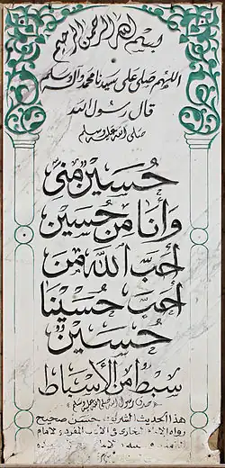 - ^ Dawwah, Hani (3 Jan 2015). "بالصور في حضرة الإمام الحسين الحجرة النبوية آثار وأنوار" [Pictures in the presence of Imam Hussein The Prophet's Room, monuments and lights]. masrawy.com (in Arabic).
