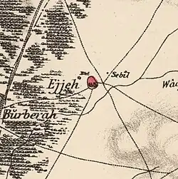 In 1863 the French explorer Victor Guérin called the village Ed-Deir, and he estimated it had three hundred and fifty inhabitants. Near the wells he saw several parts of columns and one Corinthian capital, all made of gray-white marble. He further noted sycamores, pines and acacias mimosas, at intervals, in the middle of tobacco plantations.[12] In 1883, the PEF's Survey of Western Palestine called it Ejjeh, and described it as "a moderate-sized mud village, with a pool to the north. On the east is a Sebil, or drinking-fountain. Beside the road to the west are olive groves."[13]