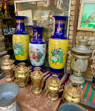 Souk al-Haraj is an old souk that sells many things, old and new. "Haraj" is the Arabic word for chaos. The exact age of the souk is not known to any of its workers or pioneers, but the old stories about it indicate that it is one of the oldest markets in al-Rusafa, and they say that it is even older than the Rusafa neighborhoods that were built by the Ottoman governors. The souk includes a catalog full of items including luxurious international paintings, Arab clothing, maqam recordings, machinery pieces, oud, old furniture, old clocks, rare antiques and many more. Rare antiques were a famous trading activity with Arabs, foreigners and amateur collectors.[13]