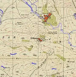 In the 1922 census of Palestine, conducted by the British Mandate authorities, al-Mazar had a population of 223, all Muslims,[11] increasing slightly in the 1931 census to 257, still all Muslims, in a total of 62 inhabited houses.[12] The village was home to Sheik Farhan al Sadi, a prominent leader in the 1936 Arab revolt in Palestine.[5] In 1937, at the age of 75, he was executed by the British authorities for his participation in the revolt.[13]