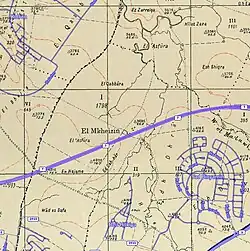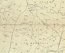 | Etymology: Kh. el Mukheizin, the ruin of the storehouses[1] | |