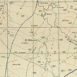 1870s map 1940s map modern map 1940s with modern overlay mapA series of historical maps of the area around Al-Mukhayzin (click the buttons) | |