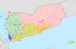 AQAP continued their territorial expansions into early 2016 by capturing al-Houta, the capital of Lahij governorate, in January.[96][82] In February 2016, AQAP launched an offensive in Abyan and Shabwah in a bid to connect their territory from Aden to Hadhramaut. Through the offensive, the group captured much of the regions coast, including major cities such as Azzan, al-Mahfad, Habban, Shuqrah and Ahwar.[82][98] Despite their gains early on, AQAP would go in the defensive for the rest of the year as focus from the government and coalition shifted to them. In February 2016, the United Arab Emirates, in cooperation with the government and the Saudi-led coalition, led a campaign to expel AQAP presence from Aden.[99] By this time, AQAP developed strongholds in the Mansoura and Sheikh Othman districts. After UAE-backed forces captured Mansoura in March 2016, AQAP was forced to retreat from their controlled areas in Aden.[99][96] In April 2016, the UAE led an operation to recapture Mukalla from AQAP. The Second Battle of Mukalla lasted for only a day, as AQAP had strategically withdrew from the city and other parts of Hadhramaut to relocate in Abyan and Shabwah and avoid large casualties.[100][33] Most AQAP forces remaining in Hadhramaut relocated to Daw'an district. In August 2016, pro-government forces drove out AQAP from Zinjibar.[98] Despite losing Mukalla and Zinjibar, AQAP continued to operate in a significant capacity throughout the year, with the capability to conduct large attacks and hold territory.[33][98]