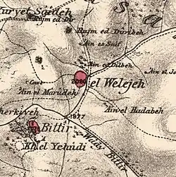 In 1838, it was noted as a Muslim village, el-Weleje, in the Beni Hasan District west of Jerusalem.[10][11]