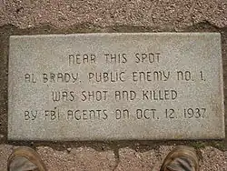 Alfred James "Al" Brady (October 25, 1910 – October 12, 1937) was an Indiana-born armed robber and murderer who became one of the FBI's "Public Enemies" in the 1930s. He and an accomplice were shot dead in an ambush by FBI agents in downtown Bangor, Maine, in 1937.[1] The spectacular public gun-battle that led to the demise of "The Brady Gang" is an essential part of Maine history, and was even the subject of a re-enactment in 2007.